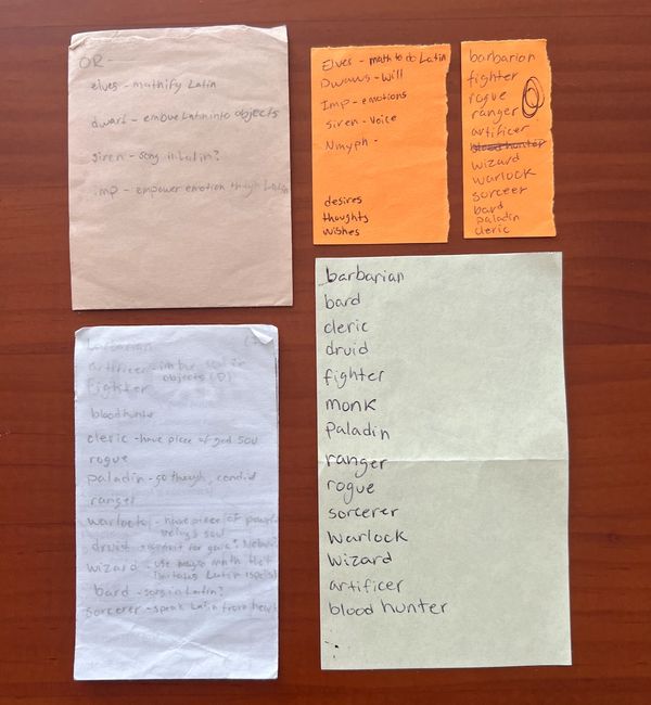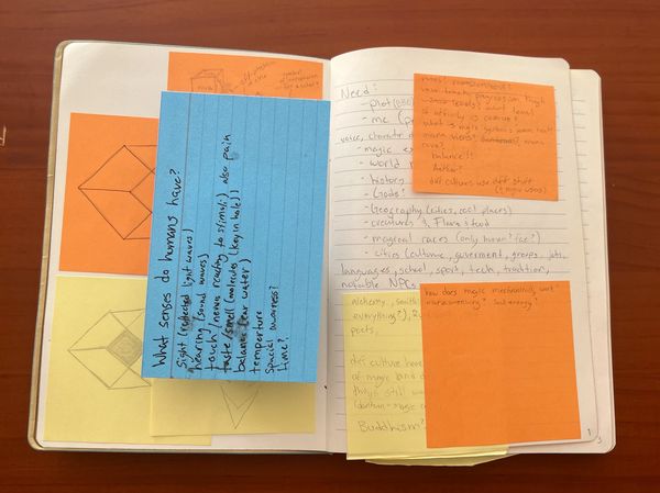 For over a decade, I have been crafting and refining a rich, immersive universe that began with a simple hand-drawn map. This world has evolved into a sprawling narrative tapestry, detailed across more than 100 pages of notes, character profiles, and plot outlines. With a heavily emphasis on accuracy, I have spent countless hours researching topics; from string theory to duplicate vocal cords. From hastily scribbled notes on scraps of paper to colorful post-it-filled notebooks brimming with ideas, every concept has been captured, explored, and developed.